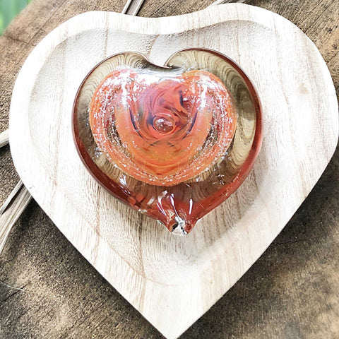 Each heart keepsake is hand-blown by skilled artisans using traditional techniques.